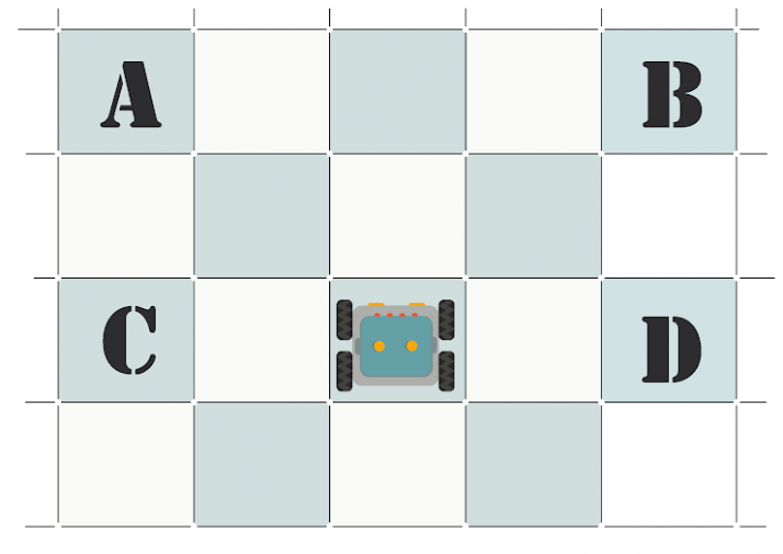 Soru-2: Yukarıda verilen resme göre robotumuzun D noktasına gitmesi için gerekli olan akış şeması adımları nasıl olmalıdır? (Başlangıçta Yön yukarı doğrudur)